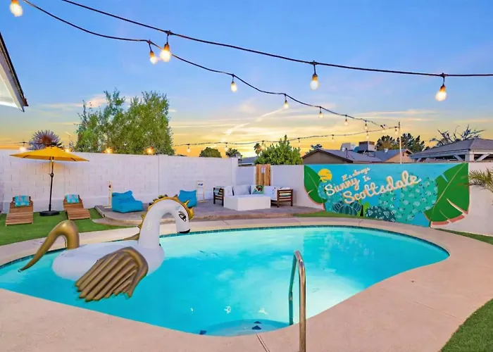 A propriedade se situa no bairro Camelback East em Phoenix a uma distância de 10 minutos de carro dos locais adequados para famílias, como o Jardim Zoológico de Phoenix. A pousada está a uma distância de 3.4 km do Jardim Botânico do Deserto, e Museu de Arte Contemporânea de Scottsdale está a aproximadamente 6 km de distância. A The No Bad Days Villa - Family Retreat -Central é um bom ponto de partida para as atrações esportivas de Phoenix, incluindo o Estádio Sun Devil, que fica a 15 minutos de distância de carro.